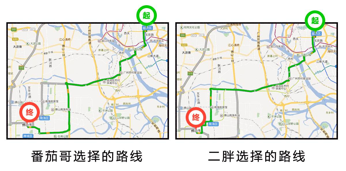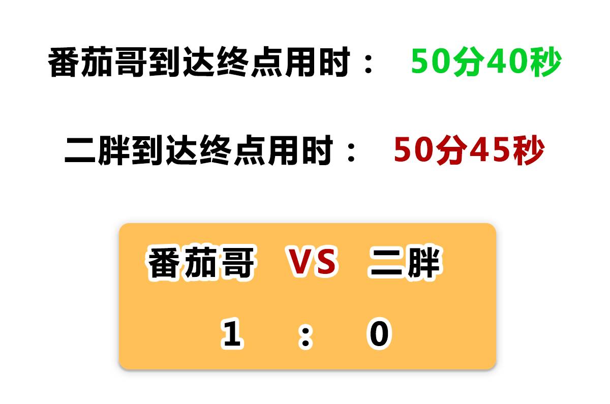 规则是路线自选,只要到达规定终点就可以了,谁先到就算赢得比赛。二胖知道有条正在施工的小路,打算抄近路赢得比赛,而番茄哥自信满满选择最平坦的大马路。