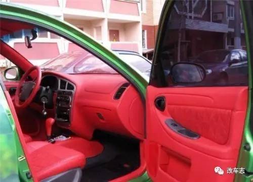 内饰部分也是做了一些细节方面的改动,不过可以总结为一个字:绿!可见车主到底是多么的钟爱绿色啊...