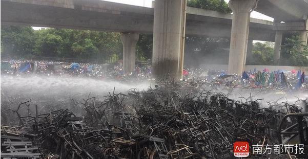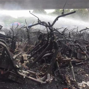 [转帖]深圳交警扣车场大火 堆积电单车烧剩骨架