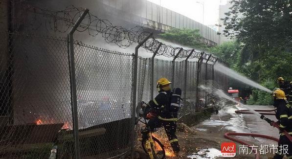 7月7日上午10时,广东深圳,南山交警大队南头扣车场发生火灾。据目击者介绍,着火的是查扣的电单车,现场明火很大。