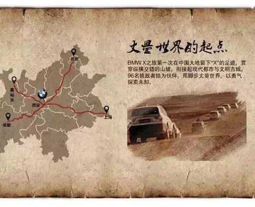 这一年,BMW X之旅车队从西安启程,以古城为原点,东至上海、南至成都、西至嘉峪关、北至北京,第一次用车辙在中国大地上留下了“X”形的足迹。