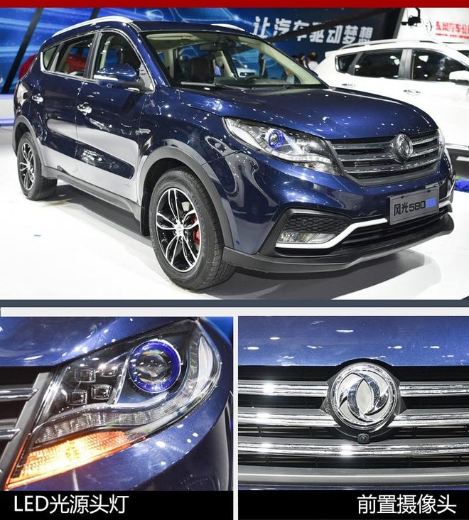 风光580智尚版采用的“飞鹰式”前脸使用镀铬三横幅进气格栅,整体立体感更强。“鹰眼”式前大灯下方带有日间行车灯,远光灯升级为LED光源;底部散热通风孔通过银色饰条连接,设计中庸而不失美感。中间双飞燕标识下方配备了前置摄像头,有效提升驾驶便利性。