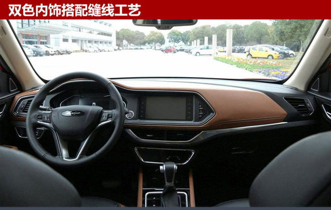 新车内饰采用浅棕色皮质内饰,搭配黑色钢琴烤漆台面,整体具有层次感。全新三辐式多功能方向盘底部带有银色饰条,更显大气;中控台区域配备一块8寸液晶屏,功能按键布局合理清晰。配置方面,众泰T300配有电动调节座椅、无钥匙进入、一键启动、电子驻车、定速巡航、感应雨刷、防炫目内后视镜等功能。