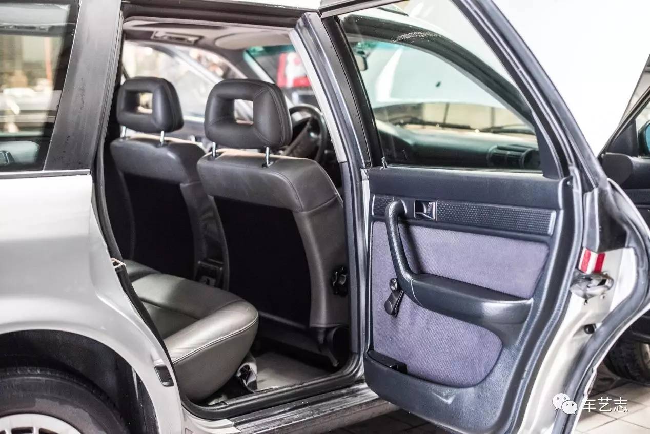 座椅是皮质包裹,但是车门板上都是黑色布艺装饰,座椅的皮革几乎没有磨损,所以我推测皮子是后包的,这台车也是前排电动车窗后排手摇窗。
