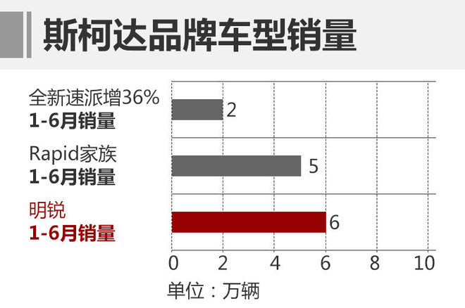 另外,上汽斯柯达旗下各款车型增速明显,全新速派 (配置|询价)自推出以来销量一路攀升,今年1-6月销售超2万辆,同比增长高达36%;明锐 (配置|询价)一直是斯柯达产品体系中的主力车型,在中国上市10年累计销量超115万辆,今年1-6月共销售新车近6万辆,占整体销量40%的比重,到下半年还将迎来其中期改款车型的上市;另外,Rapid家族增速同样十分明显,前6月销量超5万辆,其中昕动实现了33%的增长。