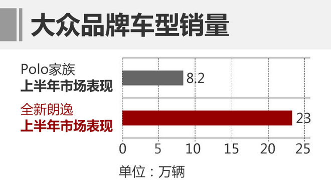 在轿车领域,上汽大众大众品牌旗下的产品分别在其细分市场占有绝对领导地位。Polo家族在A0级两厢车市场排名第一,1-6月份共销售新车超过8.2万辆;全新朗逸一直以来作为国内最畅销的紧凑型车,1-6月销售新车近23万辆。