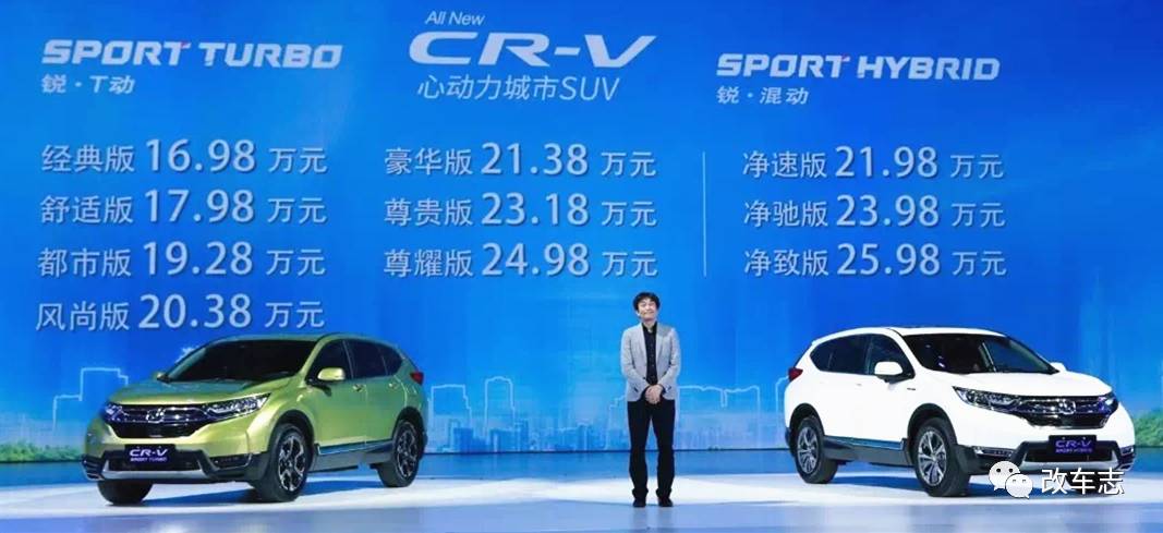 首先得从售价说起,新CR-V共推出了10款不同配置的车型,指导价为16.98-25.98万元。其中入门级(240TURBO 手动两驱经典版)车型售价为16.98万元,相比上一代车型入门价格降低了1万元。虽然价格看似拉低了,但可别忘了这是手动挡,而CVT变速箱的入门价格为17.98万,和老款保持一致。手动挡车型的"回归",这看似为消费者提供更多的选择,但有思域 (配置|询价)手动挡车型的"前车之鉴",当时产量实在少的可怜,最终造成"一车难求"的局面。而新CR-V应该也只是一个拉低门槛的视觉效果,营销推广成分居多。