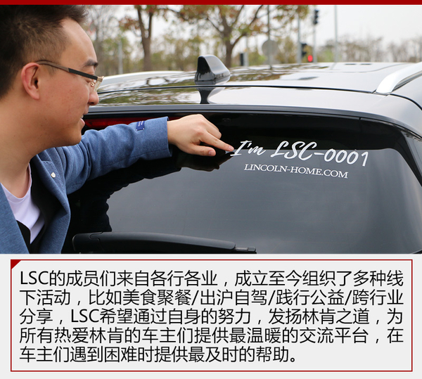 在买车的第二个月,也就是2015年2月,王先生就成立了林肯上海会-Lincoln Shanghai Club,简称LSC。LSC的成员们来自各行各业,在各自行业内都是享有一定口碑的精英。LSC成立至今组织了丰富多彩的线下活动,从美食聚餐到出沪自驾,从践行公益到跨行业分享,不断为成员们提供最好的车友会体验。LSC希望能够通过自身的努力,发扬林肯之道,共建林肯文化,为所有热爱林肯的车主们提供最温暖的交流平台,在车主们遇到困难时提供最及时的帮助。在不断的发展中,认证车主达到240余名,涵盖林肯MKC/MKZ/MKX/新大陆/领航员车型的车主。