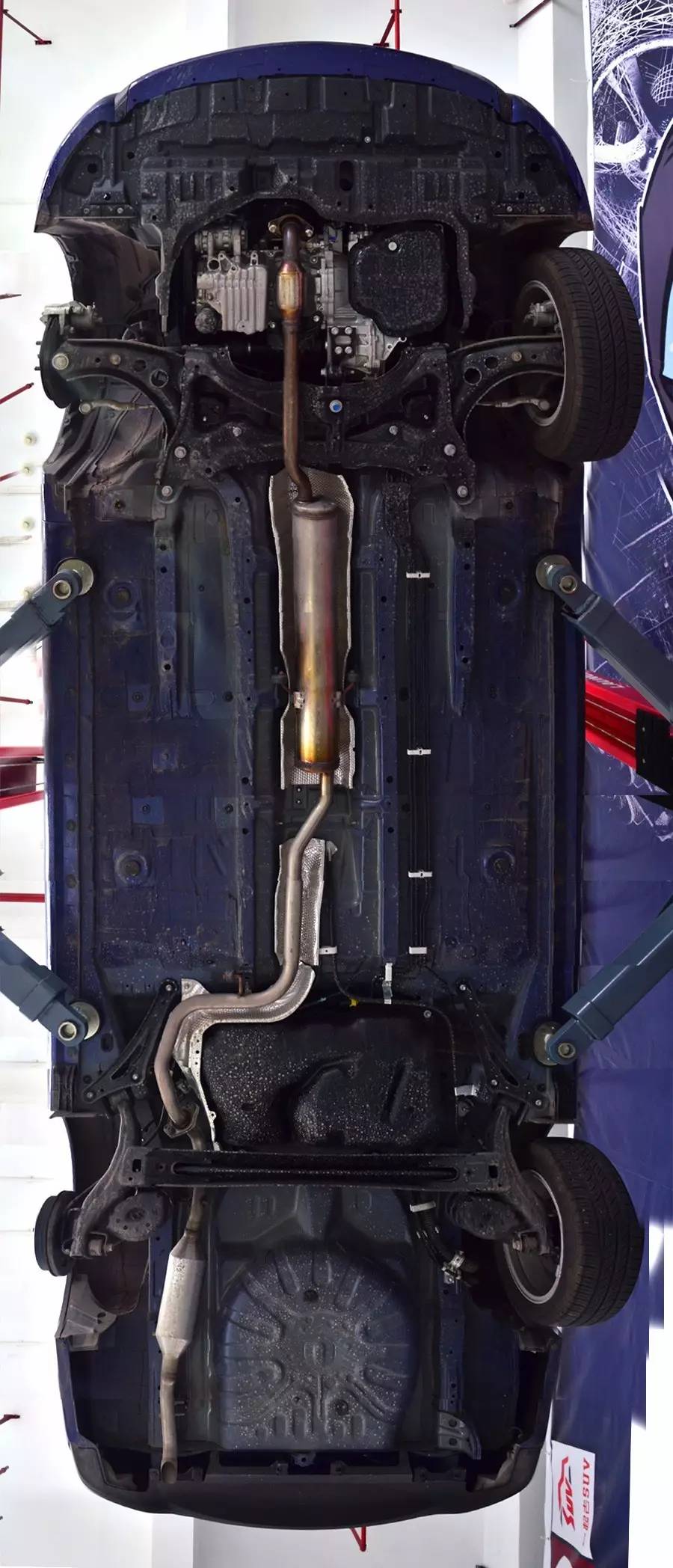 底盘防护方面,像发动机护板、底盘整流板这些都没有。车底的零部件和线束都暴露在外,如果遇到“托底”的情况,较容易遭到损坏;而且这样的设计对隔音也有影响,车底的风噪、胎噪比较容易传到车内,这在高速行驶时尤为明显。排气管隔热板也仅仅是分段少量覆盖,这些,都是成本控制的结果。