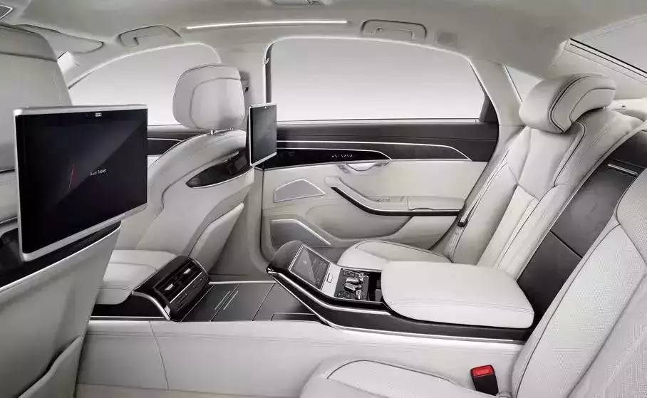 新车的外观设计虽然变化不大,但不乏点睛之笔,其内饰设计依然如此。全新一代奥迪A8的内饰采用了奥迪的最新设计语言,中控台配备了大尺寸液晶显示屏,预计还会加入更多黑科技。内饰的亮点在于后排中央扶手处,中央扶手配备了控制台,能够进行座椅加热、通风、角度调整、温度控制等操作,尽显奢侈本色。不仅如此,扶手处的液晶显示屏也可以单拿下来使用。同时,新车还设计了“按摩区域”。当前排座椅背部的电动面板开启后,后排乘客可以将脚放到这里进行按摩,充分体现了新车的人性化。