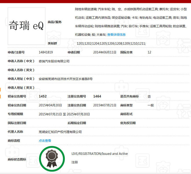 奇瑞汽车认为,戴姆勒于2016年7月28日提交EQ全新子品牌的商标注册申请,对自家旗下eQ商标出现相同或类似的情况,并认为出现侵权行为,戴姆勒不符合《商标法》第30条规定,应不予以核准注册。