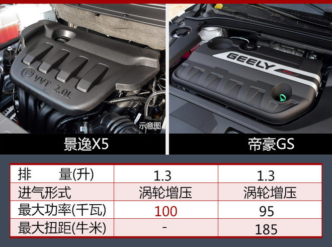 动力方面,景逸X5将增搭一台1.3升涡轮增压发动机,最大功率为100千瓦。同级别SUV帝豪GS所搭载的1.3T发动机最大功率为95千瓦,通过对比后可以看出,景逸X5在动力输出方面优于竞品车型。(图片来源:汽车之家 图/文 网通社 周岳)