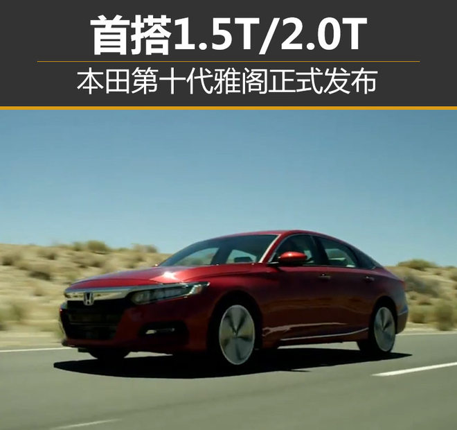 雅阁 (配置|询价)(Accord)一直是本田旗下最为畅销的轿车之一,迄今已推出九代车型。网通社从本田汽车官方获悉,全新一代雅阁在底特律正式发布。新车外观内饰方面均采用全新的设计,溜背式车身设计与思域 (配置|询价)相呼应,车身尺寸相较现款车型有所增加,同时整备质量有所降低;动力方面首次搭载了2.0T、1.5T涡轮增压发动机,并提供混合动力系统。