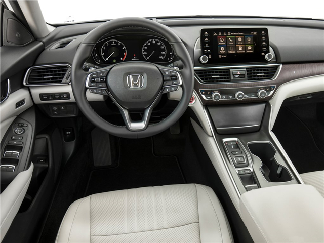 新一代本田雅阁的内饰采用了最新式设计,内饰整体设计更加简洁化,采用全新的T字型中控台,配以木纹及镀铬装饰,摒弃了现款车型的双屏幕设计,采用了一块悬浮式大尺寸触控屏,并支持CarPlay与Android Auto进行互联。