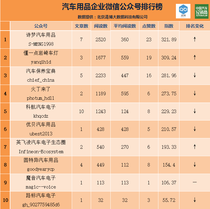 OK,后市场微信排行榜这周盘点就到这儿了,欢迎汽车后市场企业报名冲榜。(报名邮箱:autodealer@163.com qq:408286175)