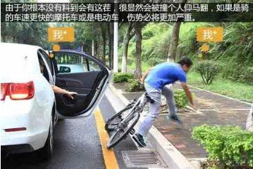 打开车门造成事故的案件发生的不知道有多少了,在打开车门的时候一定要观察好后方是否有来人,一个小举动都有可能造成无法挽回的遗憾。