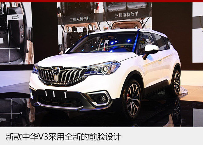 新款中华V3采用全新的前脸设计,犀利的头灯组与大尺寸进气格栅相连,且格栅配以银色装饰,增加视觉宽度的同时也比现款车型更具气势。车身整体线条与现款车型基本一致,同时保留了现款车型的悬浮式车顶设计。尾部造型十分饱满,两侧尾灯组经过重新设计并与牌照架相连,相比现款更为运动。下杠经过重新设计,黑色材质保险杠配以贯穿式银色装饰,整体运动感有所增加。
