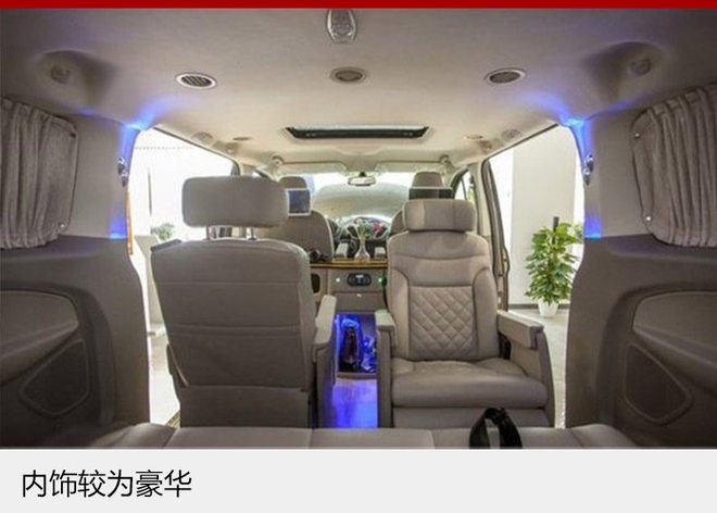 作为顶配级别车型,途睿欧商务舱版重点升级了内部设施和配置,整体较为奢华,米白色的座椅从视觉上显得更为高档,材质也选用了商务舱式的软皮包裹,而蓝色的车内氛围灯也进一步彰显其豪华感。新车娱乐设施较为齐全,在前排座椅后配有显示屏及耳麦等,后排乘客也可以独立控制该影音系统。