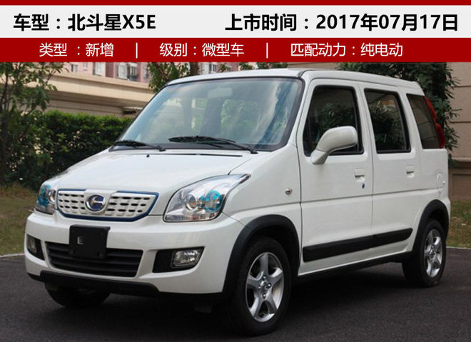 昌河基于北斗星X5打造的纯电动车——北斗星X5E正式上市,新车共推出2款车型,补贴后(北京地区)售价分别为6.1万、7.7万元。外观设计方面与北斗星X5汽油版车型保持一致,但换装了昌河汽车Logo,同时进气格栅造型进行了调整,周围采用蓝色饰条点缀表明其新能源车身份。尾部设计方面,北斗星X5E同样沿用汽油版车的设计,仅增加EV标识和续航里程标识。
