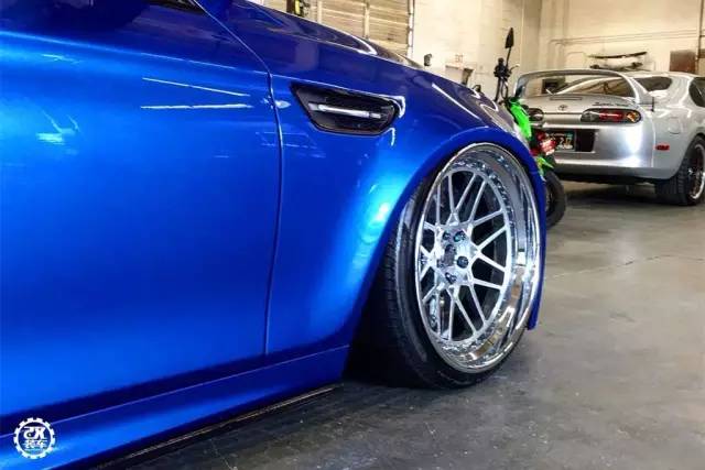 其次,车主选择手工打造了前后翼子板的宽体,如果不是对车特别敏感的人,估计很难发现,整体的线条过度的相当自然。得益于宽体的加入,让这辆M5看起来更加饱满,展现出的力量感更强。