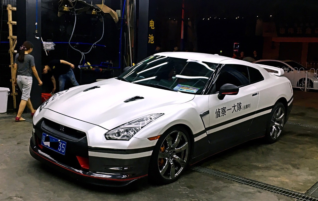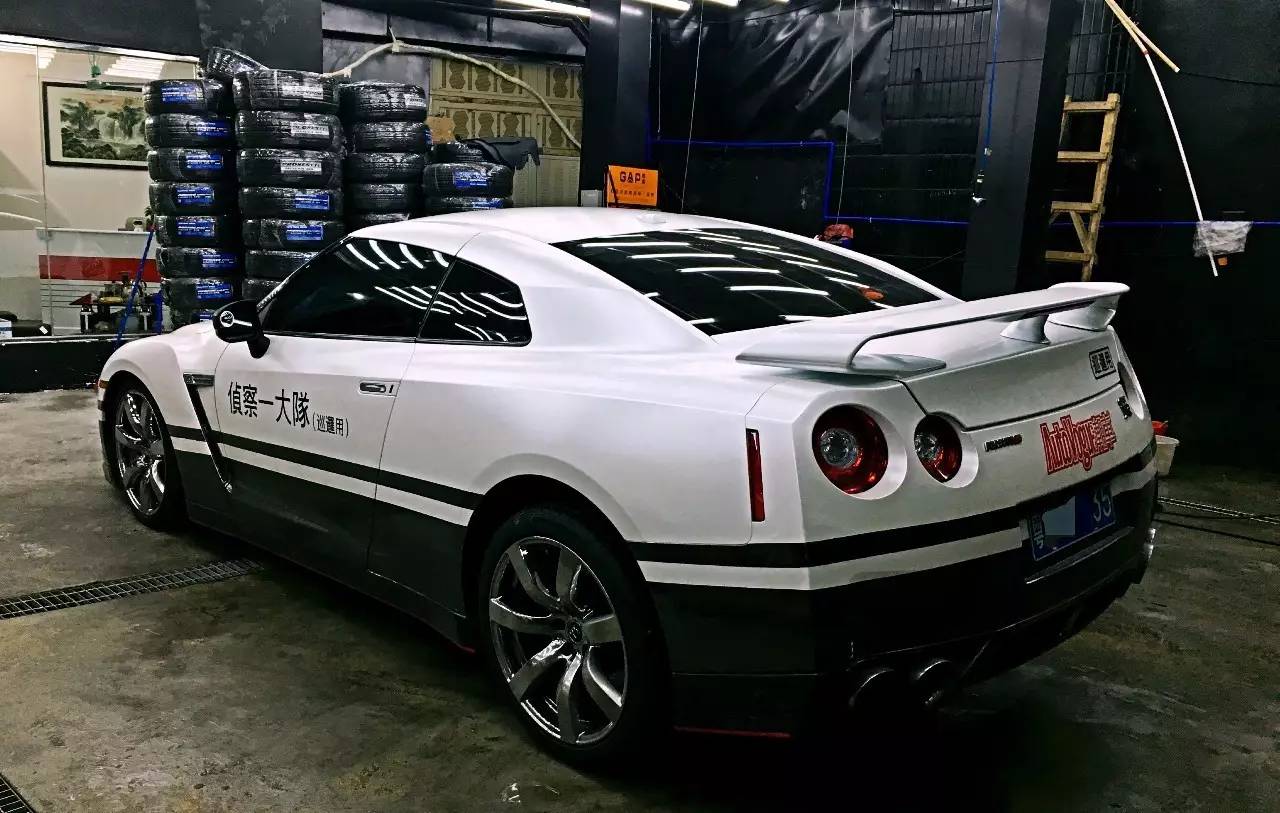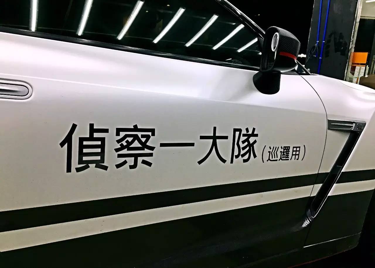 为了致敬头文字D漫画中的AE86,他决定把自己的GT-R也贴成熊猫配色。不同的是,原本车门上的"藤原豆腐店(自家用)"的标志被换成了"侦查一大队(巡逻用)",改好之后,反而有种警车的感觉!这是因为Brian曾有当兵的经历,想把自己要致敬和表达的元素都融合一些在拉花里面。