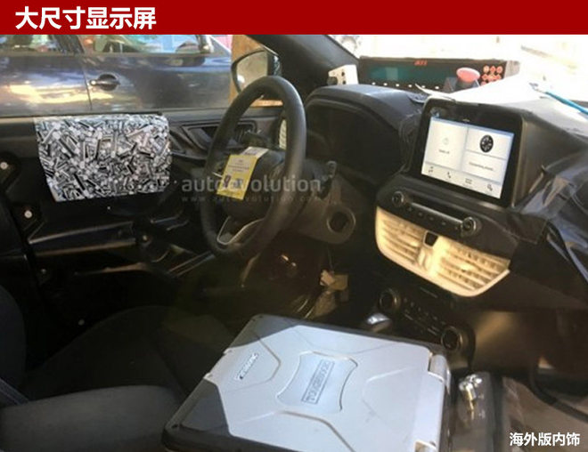 此次谍照图片未拍到内饰部分,但可以参照之前曝光的海外版车型。全新福克斯内饰层次分明,功能区域划分清晰,中控上方配有大尺寸显示屏,并搭载SYNC 3多媒体系统,下方为空调出风口与控制区域。三辐式多功能方向盘配有银色装饰点缀,其后方配备了全新设计的仪表盘。