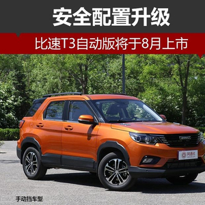 配置方面,比速T3自动挡车型配备了360°综合行车安全系统、TPMS胎压监测系统、车载行车记录仪、前/后驻车雷达、倒车影像、环绕式6安全气囊、EPB电子手刹、ESP车身稳定系统、定速巡航、安全侧气帘、盲区监测系统以及车道偏离预警等配置。