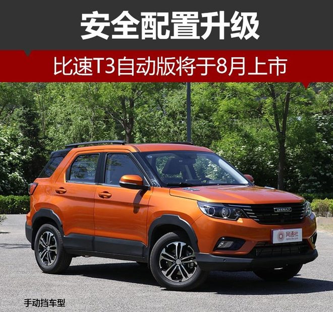 T3是比速汽车旗下紧凑型SUV,目前在售车型仅提供手动变速箱,年内企业将推出自动挡车型。网通社从比速经销商了解到,T3自动挡车型有望8月上市。新车前脸采用向外延伸的横幅式进气格栅,整体设计趋向年轻化。配置方面,除了延续手动挡车型标配的360°行车安全系统等安全配置外,自动挡车型还增加了侧气帘、盲区监测以及车道偏离预警等配置,安全防护更加全面。动力上,新车将搭载1.3T发动机。