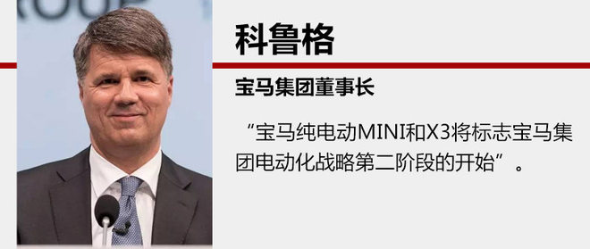 在2017年宝马全球资讯年会上,宝马集团董事长科鲁格表示要推出纯电动版MINI和X3车型。两款车型的推出,代表着宝马集团正式进入电动化战略第二阶段,基于三门MINI打造的纯电动车将在2019年正式推出。