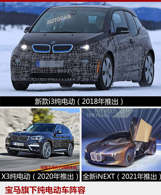 到2021年前,宝马集团除推出纯电动版MINI之外,还会推出新款i3的和X3的纯电动车,另外还包含一款全新iNext。结合之前曝光的谍照来看,新款i3整体外观设计没有太大的改变,另外新增的i3s版本搭载一台更大功率的电动机,最大功率可达到149千瓦,峰值扭矩可达到249牛米。