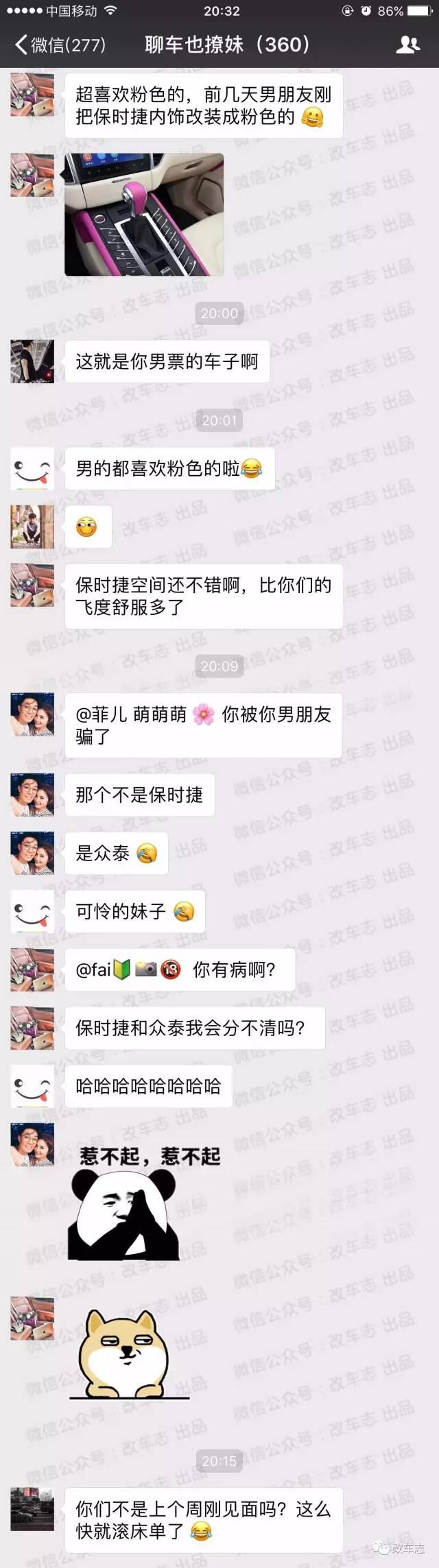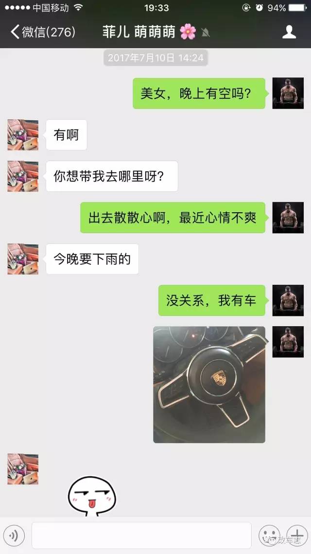 看完群聊之后各位吃瓜群众表示,这分明就是一辆为了约Pao而打造的"保时泰"嘛!最后碍于面子,妹子已经在近日退出了这个微信群,并且朋友圈也变成了"仅展示最近三天"的内容。