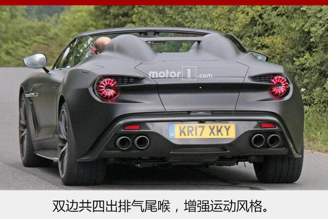 阿斯顿·马丁是英国知名的汽车制造商,总部位于英国盖顿,以限量版超级跑车为主要产品,并且拥有Vanquish (配置|询价)系列、Vantage (配置|询价)系列等多款经典超跑车型。近日,网通社从海外媒体motor1获得了一组阿斯顿·马丁Vanquish Zagato Speedster(无车棚版)车型的无伪谍照。另外,新车将在今年8月中旬举办的2017美国蒙特雷汽车活动周上携手Vanquish Zagato Volante(软顶敞篷版)一同亮相。两款车型全球限量99台,其中Vanquish Zagato Speedster限量28台进行销售。