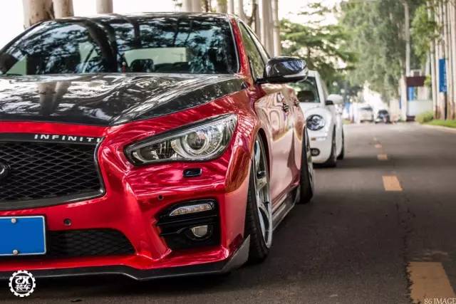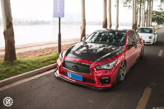 英菲尼迪Q50L,虽然外观看起来很有杀气,但因为是加长版,同时2.0T的动力也只能买买菜而已。来自广西南宁的琪琪,就有一台Q50L,并拿它玩起了改装。