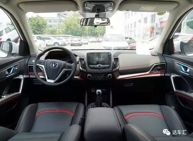 内饰设计上,大量使用软质材料包裹,很有档次质感。特别是中控镶嵌的大尺寸液晶显示屏,不仅大幅提升了整体科技感,一条红色线贯穿中控台,运动感十足。