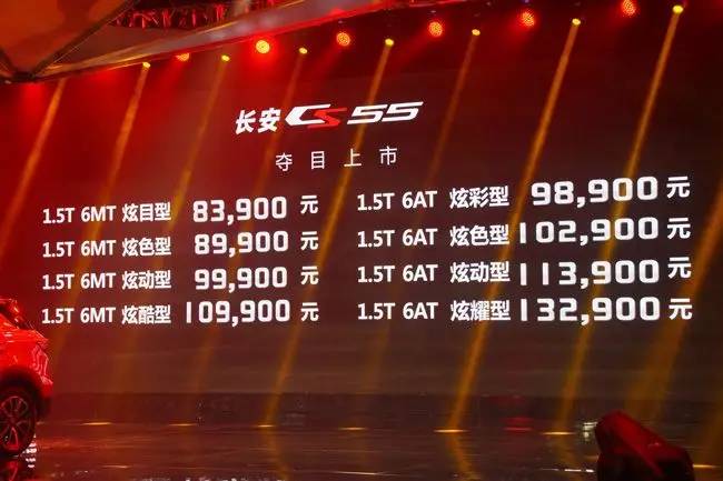 2017年7月26日,长安CS55正式上市,该款车型的售价区间为8.39万元-13.29万元。此次上市的CS55全系搭载了一台1.5T涡轮增压发动机,共推出八款车型,其中包括四款手动挡和四款自动挡车型。长安CS55上市后将会以吉利远景SUV和广汽传祺GS4为竞争对手,展开全面的竞争。