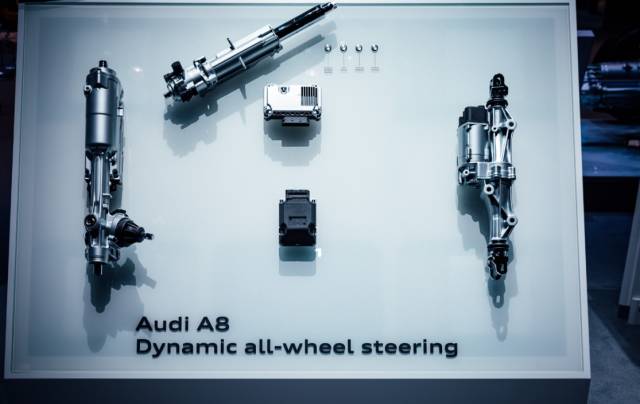 除了自动驾驶,全新A8的最核心竞争力应该是其能让乘坐更舒适的主动悬挂系统,以及能让操控更游刃有余的动态四轮转向系统。乘坐和驾驶感受同时达到高水准,全新A8也算给了粉丝一个惊喜。
