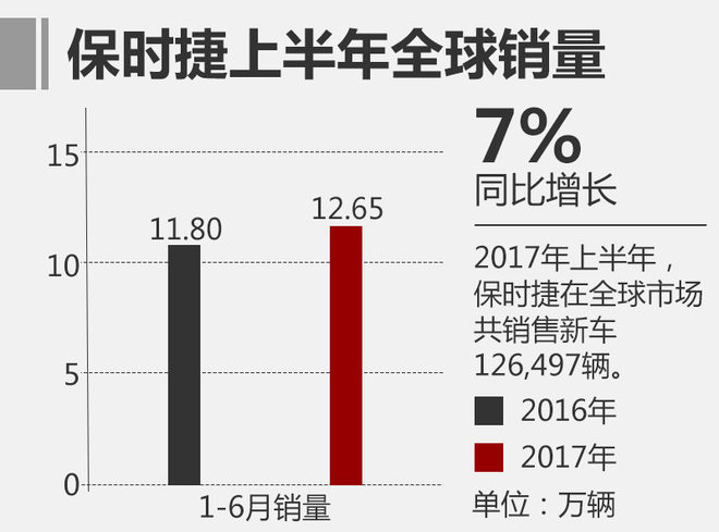 在销量表现方面,保时捷在全球市场共销售新车126,497辆,相比去年同期的117,963辆增长7%。全新Panamera (配置|询价)成为保时捷上半年销量增幅最为强势的车型,同比增长高达54%。除此之外,Macan (配置|询价)也在2017年上半年实现了两位数增长,交付量突破50,000辆,同比增长11%。另外,保时捷旗下的豪华SUV Cayenne 上半年整车销量达到了35,601辆。