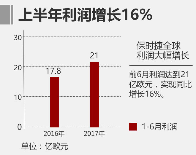 北京时间7月28日,保时捷公布了全球的财务表现情况。网通社从保时捷官方了解到:2017年上半年,保时捷全球销售利润达到21亿欧元(以7月29日更新的汇率计算为166.1877亿元),同比增长16%;营业收入增加8%,达到118亿欧元(即933.8166亿元);销售回报率由16.8%增至18.1%;交付新车126,497辆,同比增长7%;员工人数同样实现增长,达29,280名。
