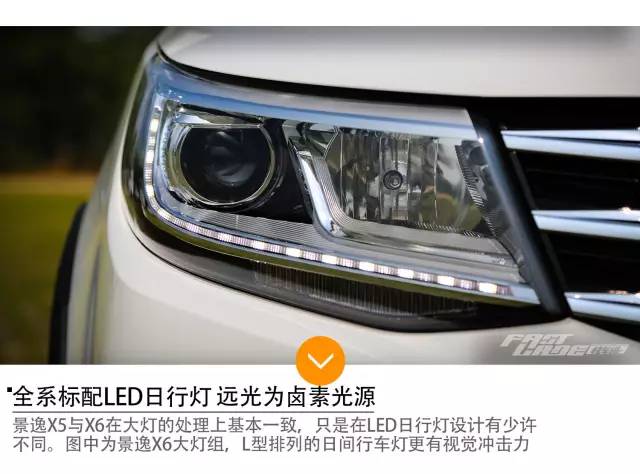 景逸X6在外观上基本与景逸X5无太大差异,主要变化包括LED日行灯,雾灯,车侧装饰件及尾窗等。总体来说,很符合现代人的审美,造型也属于中规中矩,并没有设计的很跳跃。而内饰部分两车更是惊人相似,我们就主要介绍一下景逸X6,毕竟还没有上市,还有一定的神秘感。当然,由于是试驾车型是厂商提供的试装车的原因,配置上和上市后会有差异。