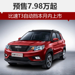 比速T3是比速汽车旗下的首款SUV车型,于去年12月正式上市,前期车型仅配备手动变速箱。网通社从比速汽车官方获悉:比速T3自动挡车型正式开启预售,共推出3款车型,预售价区间为7.89-8.99万元。新车外观内饰均与现款车一致,搭载1.3T涡轮增压发动机并匹配一台CVT变速箱。另据了解,比速T3自动挡有望于本月内正式上市。