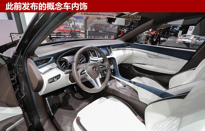 全新QX50内饰同样借鉴概念车设计,分层式的非对称中控台凸显出很强的设计感。大量镀铬装饰的加入也使内饰整体豪华感有所提升。此外,新车采用全新设计的多功能方向盘,中控台配备两块大尺寸液晶屏,从此前概念车来看,两块屏幕将分别用于显示行车信息与多媒体系统。