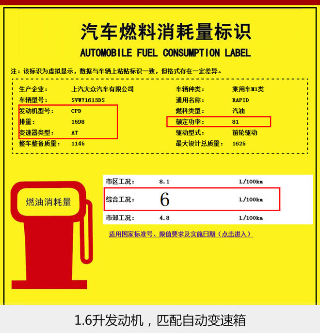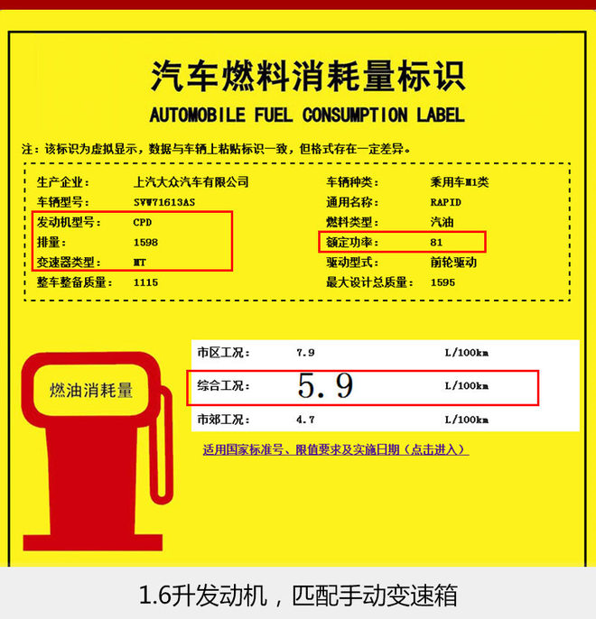同时,此次工信部还公布了新款昕锐将搭载1.6升发动机的燃油标识公告。该款发动机额定功率为81千瓦,结合此前的消息来看与之配备的有望是5速手动和6速自动变速箱。其中,1.6升发动机加5速手动变速箱的车型整车整备重量减少5公斤,百公里综合油耗也由6升下降至5.9升。另外配备6速自动变速箱的车型,百公里综合工况下油耗由原来的6.2升下降至6升。