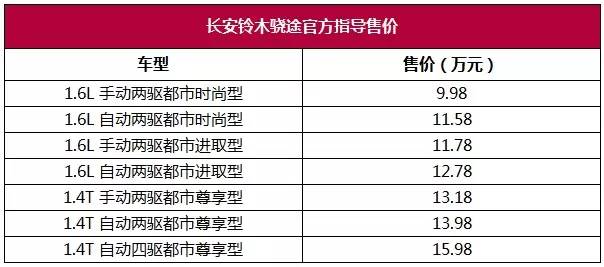 昨日晚(7月31日),长安铃木骁途正式在重庆上市。售价区间为9.98-15.98万,包含1.6L、1.4T两种动力和MT、CVT、6AT三种变速箱共7款车型。骁途宣传语为“与骁途一起换个活法”,目标是那些注重家用性又希望兼顾年轻个性的群体,希望能够成为这些潜在用户的第一辆SUV。