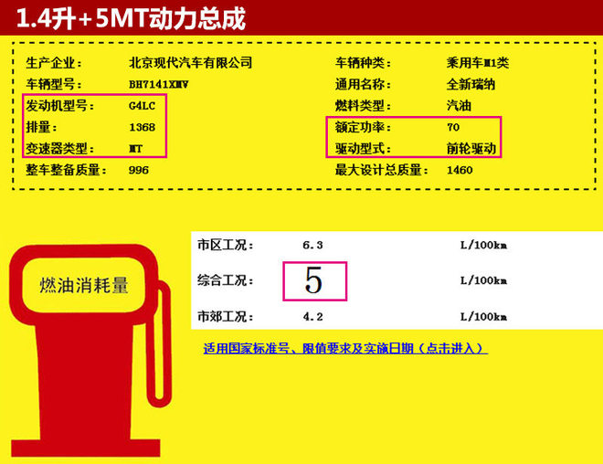在今年6月份举办的重庆车展中,北京现代发布了全新瑞纳(REINA)车型。这款新车可看作是北京现代本地化战略下沉与深化的标志,专为三四线城市年轻用户打造,并在8月份正式上市。网通社从国家工信部获悉,北京现代全新瑞纳搭载1.4升自然吸气发动机,额定功率为70千瓦,匹配5速手动和4速自动变速箱。同时,新车燃油经济性将进一步提升,油耗最高可降低12%。