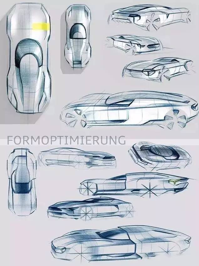 这是crazysketch 疯狂草图阶段,分为上中下三段,用手绘配合简单的PS渲染,老师会带同学出画出Pforzheim 式的草图。从集体发散思维,到逐个单独辅导,从如何构思一辆汽车,到怎样画出最性感的透视,在这个阶段每个学生的创意能力和草图技法都会得到极大的提高!