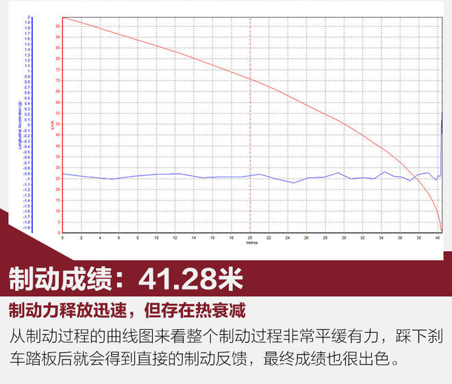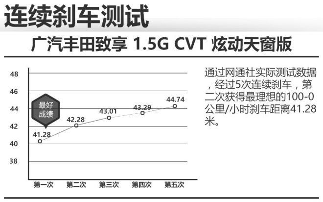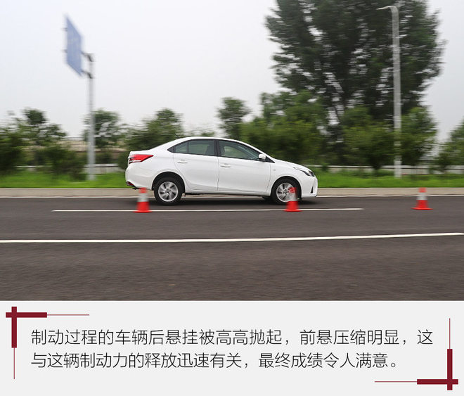 从刹车的成绩来看,广汽丰田致享的制动力释放还是比较线性的,制动力不存在明显虚位,整个释放过程呈现出全程高度紧绷的状态。而车身前悬被压缩至极限,后轮被高高抛起,虽然车身姿态比较夸张,但是坐在车内并不会有丝毫不适合感觉,制动过程还是能够给驾驶者信心的。