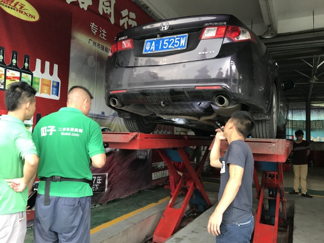 最后,还要举起整辆车,看看底盘有没有问题,有没有漏油。这其中发现有任何问题都会立即叫买家过来解释情况,给一些维护的建议。这一套检查做下来起码要40分钟,确实感觉很认真负责。