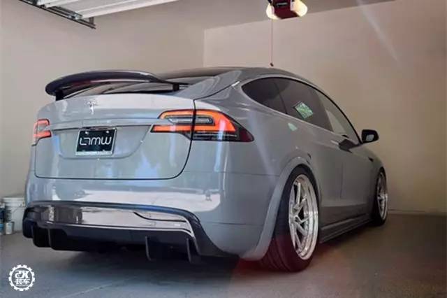 今天就给大家带来特斯拉Model X (配置|询价)的改装案例。原厂的Model X为了优化空气动力学,整体的外观线条都较为平整,因此车主改装了一套碳纤维材质的小包围,层次感更为丰富了。