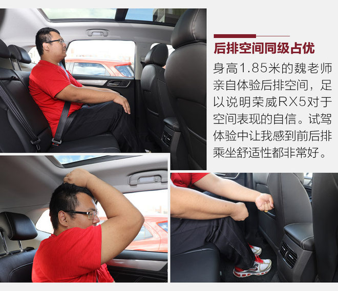 与15.88万元价位的同级车本田CR-V (配置|询价)和吉利博越 (配置|询价)相比,荣威RX5在宽度和高度上都具有优势,横向空间的乘坐舒适性占优,后排的乘坐感受也确实不错。