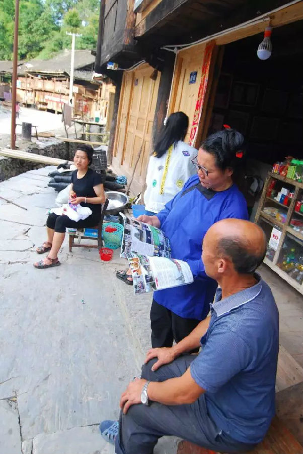 傍晚时分,杜启弘过栽麻街道,顺山间小路来到宰荡侗寨。2015年8月,他曾来宰荡寻访侗族大歌传承人胡官美,并将过程刊登在中国摩旅地图第二集中,这次是专门送杂志来的。